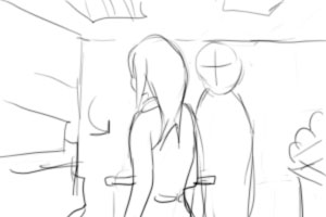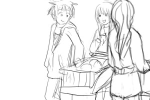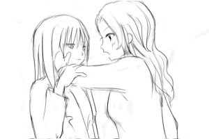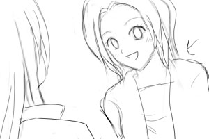 ヤスコ、笑顔から表情を曇らせて少しおこったかんじ。 ■固定 ヨーコ! 久しぶり!」 ■90