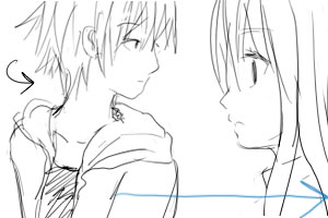 少し迷ったのち、仕方なく振り返るヨーコ だが振り返った後ハッとする。 ■ズームアップ