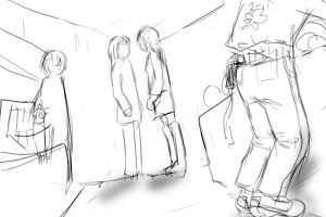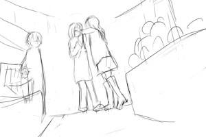 2人立ち止まる。 ■右へ振る(その後ピント注意) ■ys2_1_01.mp3 ■60 |
