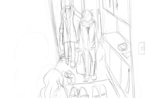 ■固定 ■90 10分の距離なので ここに引っ越してきたの。 ヤスコが扉を開けて中へ入って次のカットへ どうぞ、入って」←姿が見えない状態で |