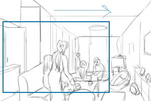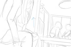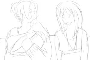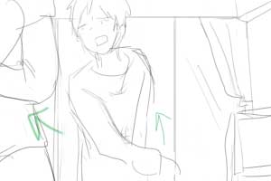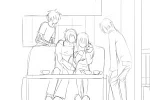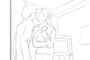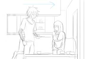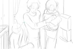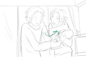 ヤスコ、ダイスケの方に行って赤ちゃんを抱っこする ■120 ■固定(だだっ広いので要修正) |