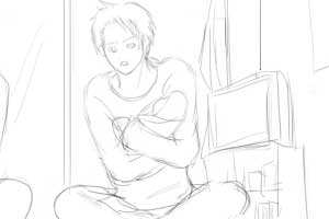 カズオ、心配そうにヨーコを見守る ■50 ←この絵はヨーコの顔みてないけど |