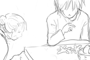 カズオに、そっとミヨちゃんが手を伸ばす ■手をフォロー→停止 ■90 |