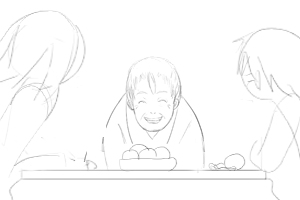 カズオは2個目のみかんを食べ終わり、 ミヨちゃんから3個目のみかんを差し出され 苦笑い。 断れなくて3個目のみかんをむき出す。 ■固定 |