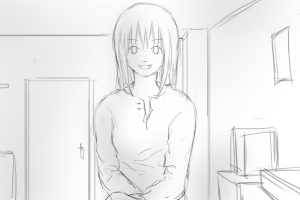 扉の間からまっすぐ見えているヨーコのアップ ※おなじ ■固定 |