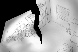 後ろを向くと真っ暗な中に扉が開いている ■固定かゆっくり回転 ■30 |