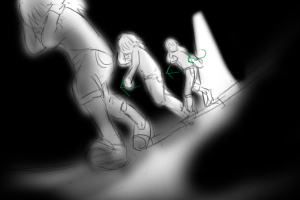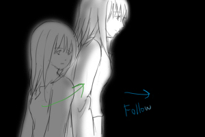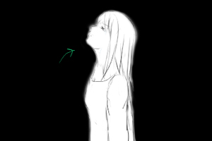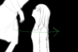 風で髪がなびくうしろへ ■固定 ■60 ※↓ここから、赤と黒とか色数少なく表現。夢の中っぽさをさらに強調 |