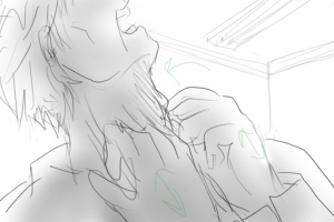 フラッシュ アップ ■20 ■手ぶれ ガリガリと痩せた首を引っかく手。 |