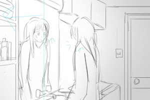 タオルを顔へ ゆっくり顔を上げて、鏡の向こうに見えるカズオの背中を見る 寝ぼけ顔のカズオがいる ■k3_2b_03.mp3 ■90 |