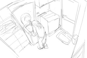 突然吐き気が襲って、吐く ■TB 扉の外(廊下)からの撮影でもいい ■90 |