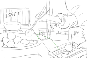 大食いのカズオのために、大量のごちそうを作ってやった。) ←ご馳走だけだけど、調理器具も置いておきたい ■TB→ディゾルブ ↑ここまで38秒↑ |
