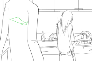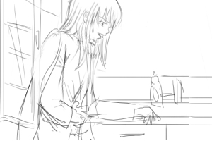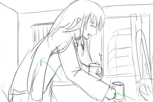 (手前にヨーコ通過というか画面を覆う感じ) 口だけぎこちなく笑っているのがわかるように テーブルの上のコーヒーカップを2つ洗い場に持っていく ■y4_1b_03.mp3 ■140 |